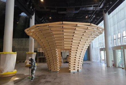 これは何でしょう? 那珂川市にあるミリカローデンのエントランスに新しくできた、 那珂川産の桧を贅沢に使った、巨大なオブジェです…