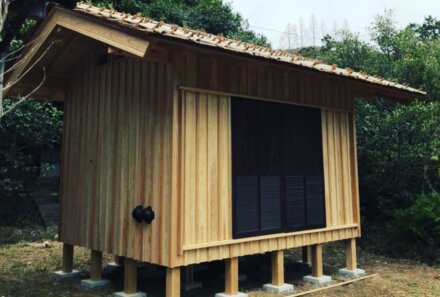 板倉・石場建て・杉皮葺きの小屋、完成しました😊 杉皮屋根、カッコいいです😊 …