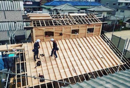 しばらく止まっていた自宅の工事も再開し、室内は床を張り始めました。床下の断熱材は、パーフェクトバリアという、ポリエステル繊維の断熱…